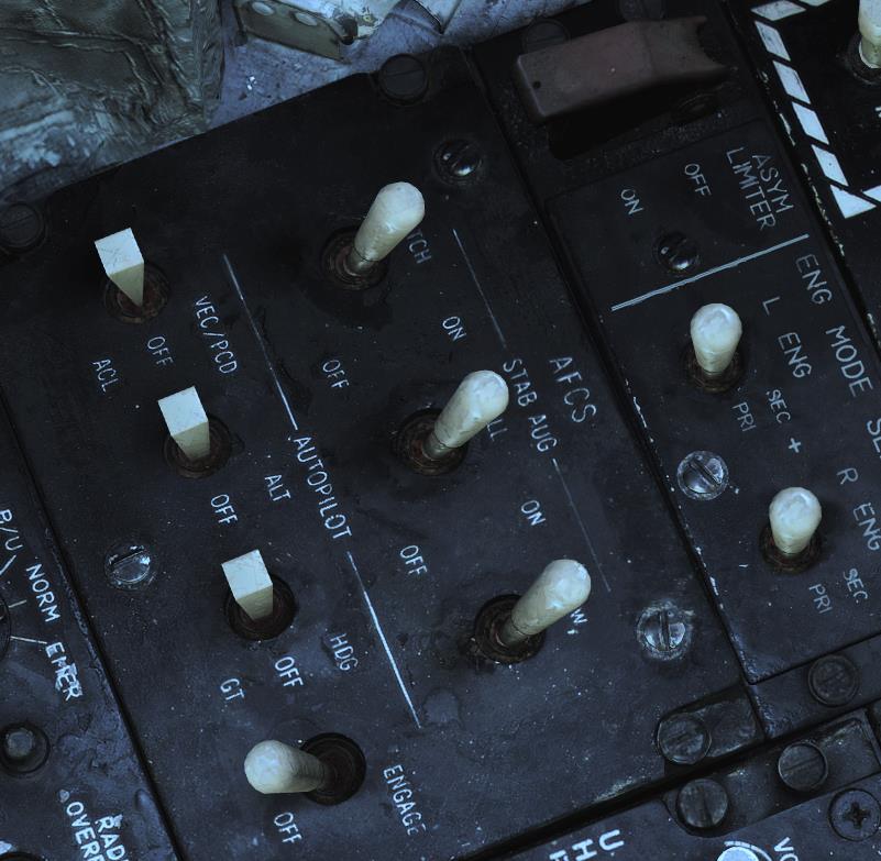 9. AN/ALR-67 RWR 전원 스위치 설정 - ON. RWR은 항공기가 공중에 뜬 후에 활성화될 것이다.
