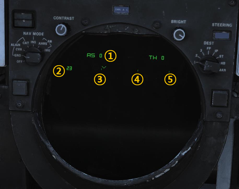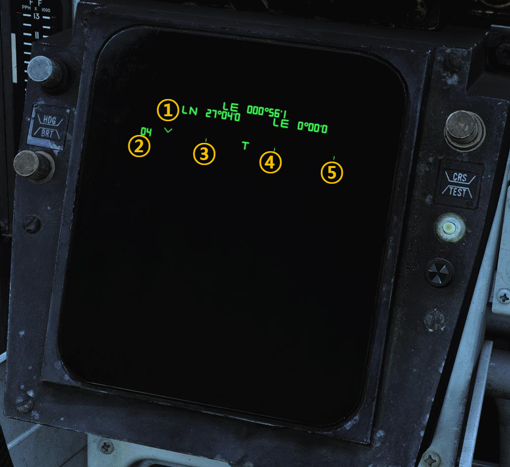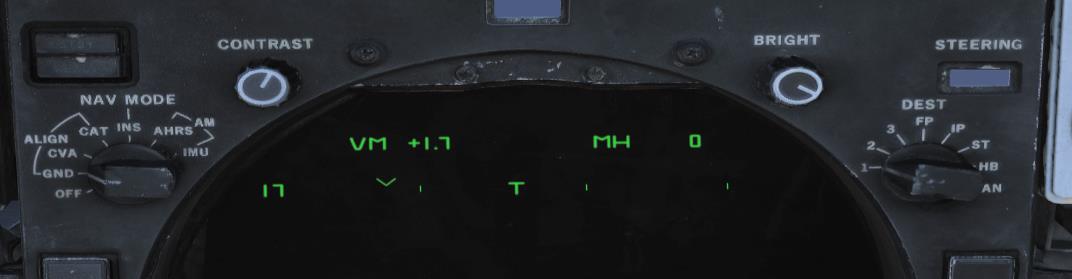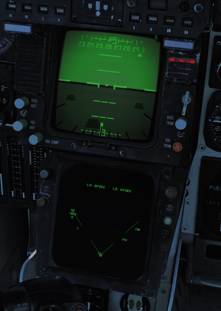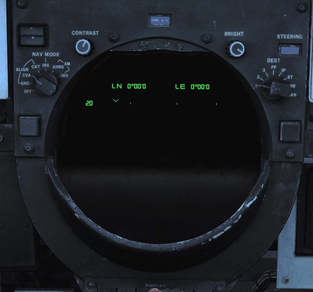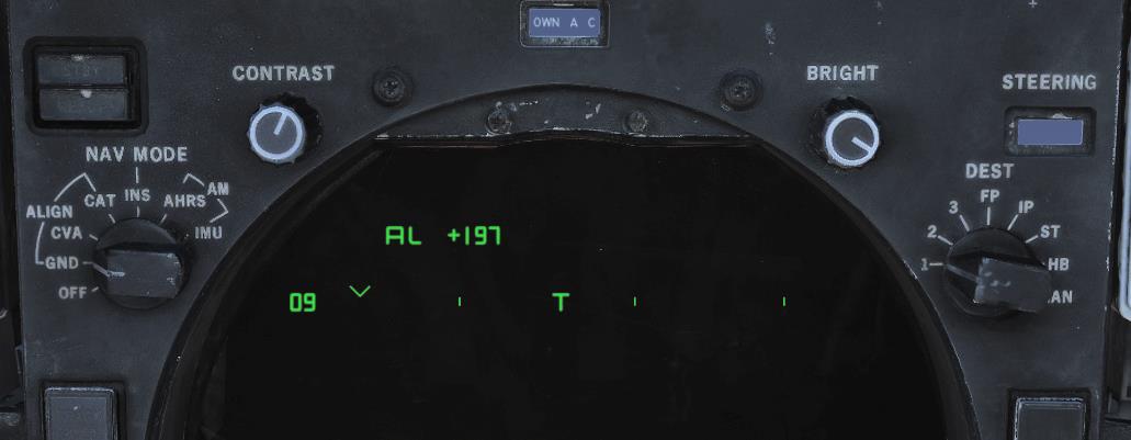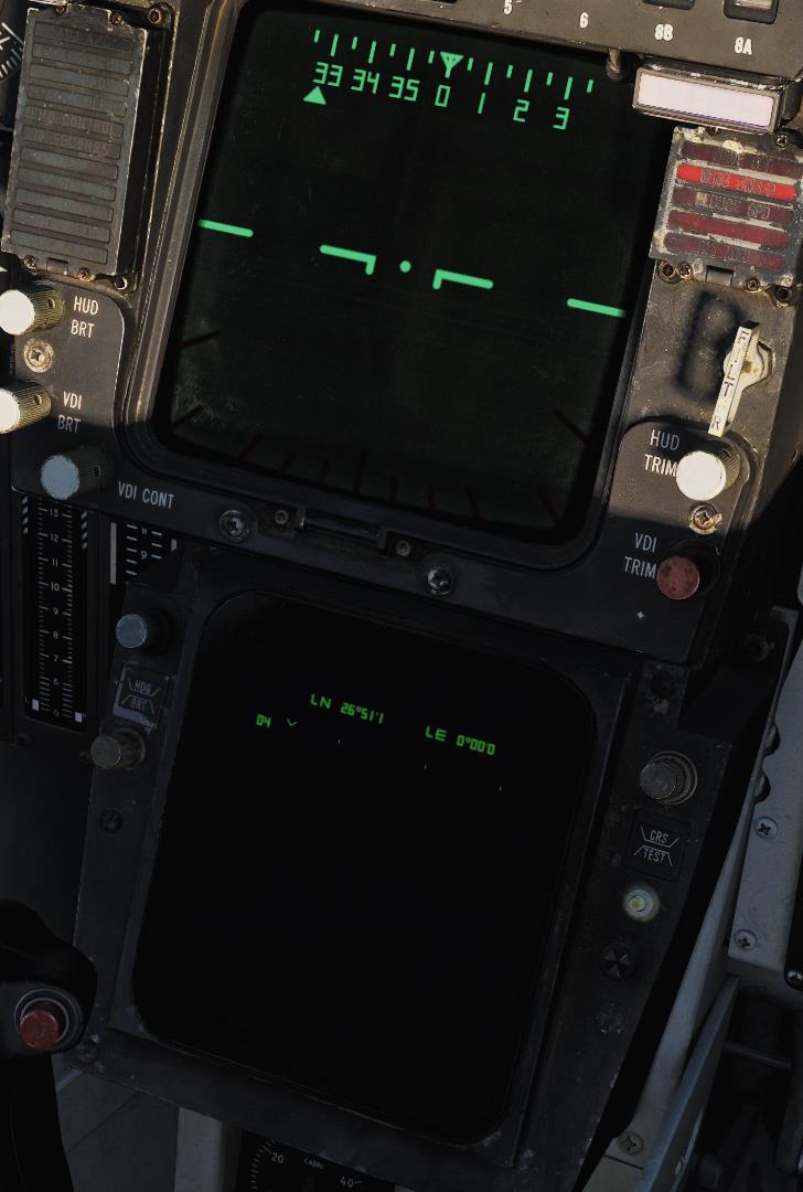 38. HSD 모드 스위치는 "TID"로 설정한다. 이는 HSD 화면이 RIO의 전술 정보 화면 (Tactical Information Display, TID)를 중계하도록 만들고, INS 정렬 진척을 추적 관찰할 수 있게 한다.
