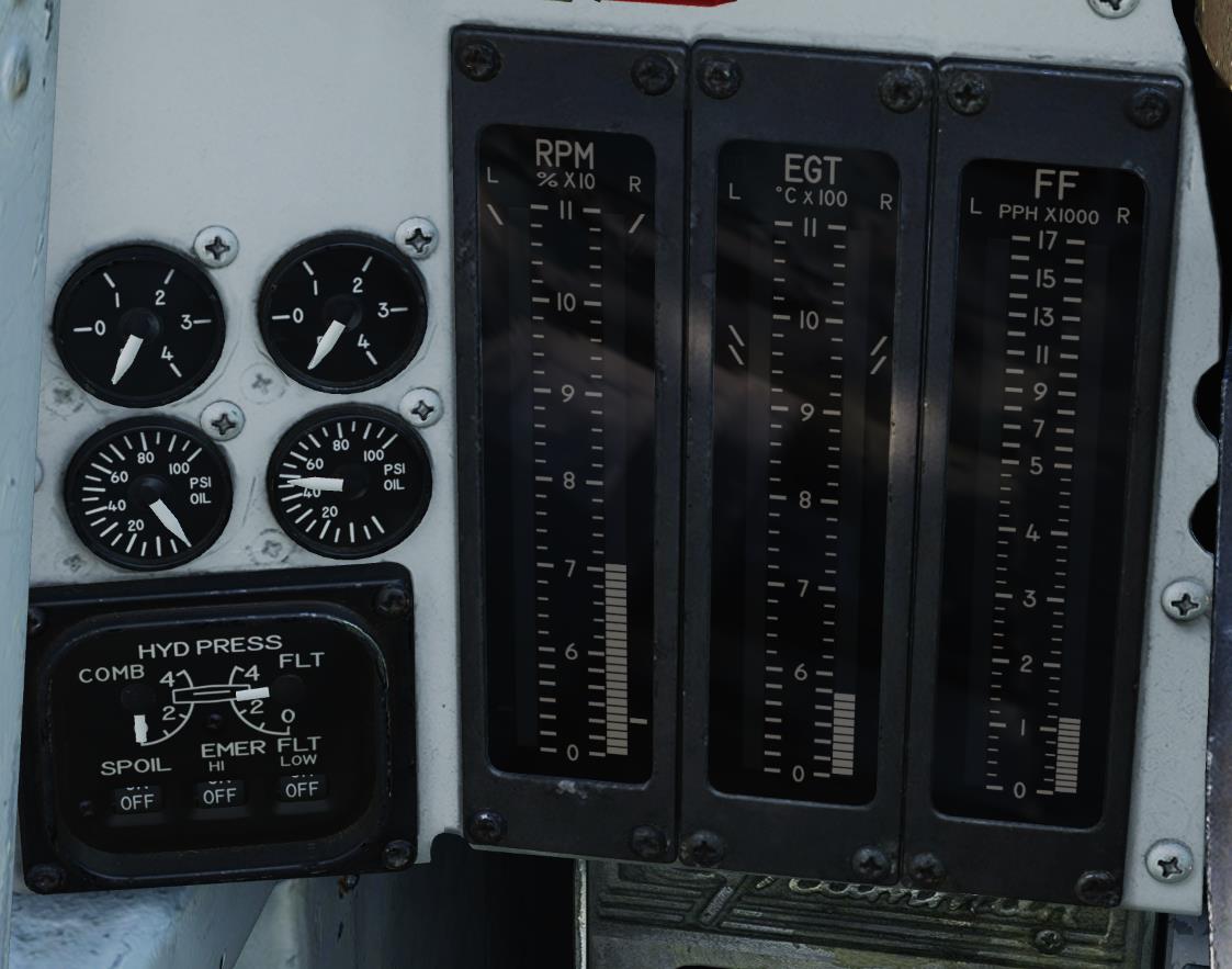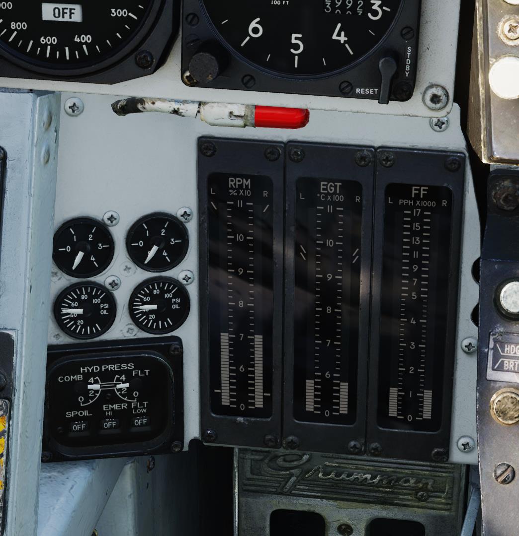 | 시동 절차는 다음과 같은 부문으로 분리될 것이다. 1. 조종사 시동 전 2. 조종사 엔진 시동 3. 조종사 시동 후 4. RIO INS (INERTIAL NAVIGATION SYSTEM, 관성 항법 장치) 정렬 (쇼어) 5. RIO INS (INERTIAL NAVIGATION SYSTEM, 관성 항법 장치) 정렬 (항공모함) 6. RIO 정렬 절차 후 |