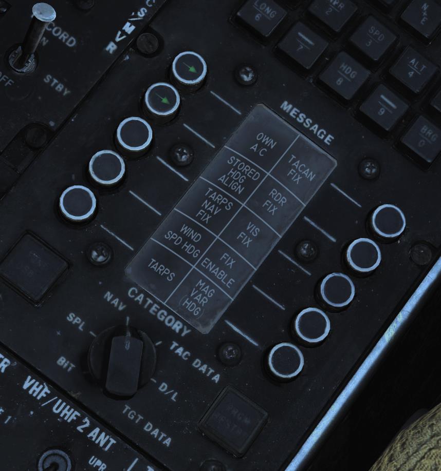 8. CAP (Computer Address Panel) CATEGORY 선택 장치를 NAV로 설정하고 OWN AC (Own Aircraft, 현재 항공기) 문자 단추를 선택됐음을 확인한다.