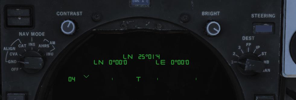 주의: INS 시스템 정렬되고 가동되는 중에, 여전히 모든 중간 지점 (waypoint)의 좌표를 추가해야 한다는 것을 명심할 것. NAVIGATION 부분에서 중간 지점 추가가 완료될 것이다.
