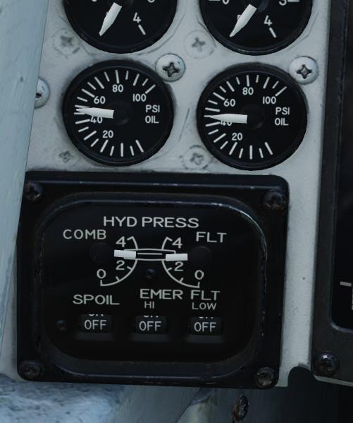 31. COMBINED HYDRAULIC PRESSURE와 FLIGHT HYDRAULIC PRESSURE 지시계가 각각 3,000 psi 로 동일한지 확인한다.