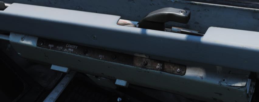 | 9. 비상 탈출 좌석 무장 핸들 (Arming Handle)를 누르거나 (내림) "LSHIFT+E"를 눌러서 조종사 비상 탈출 좌석을 무장시킨다. | ![]() |