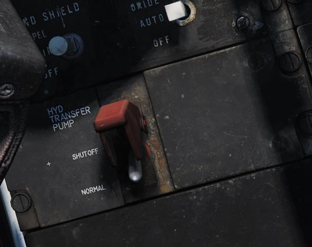 15. HYD TRANSFER 펌프를 SHUTOFF (차단)로 설정.