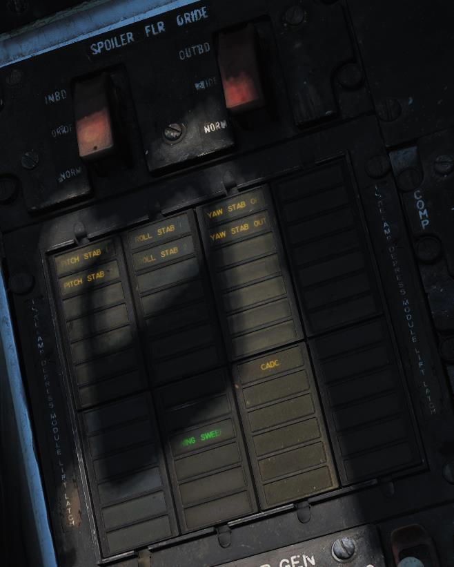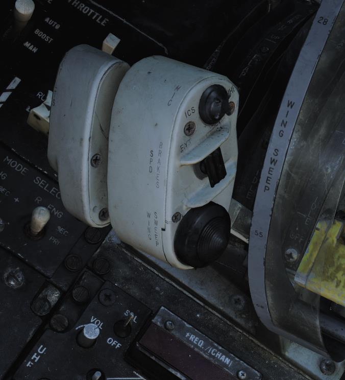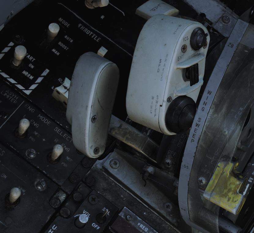 12. 비상용 Wing Sweep 손잡이를 OVERSWEEP (후방)으로 설정한다.