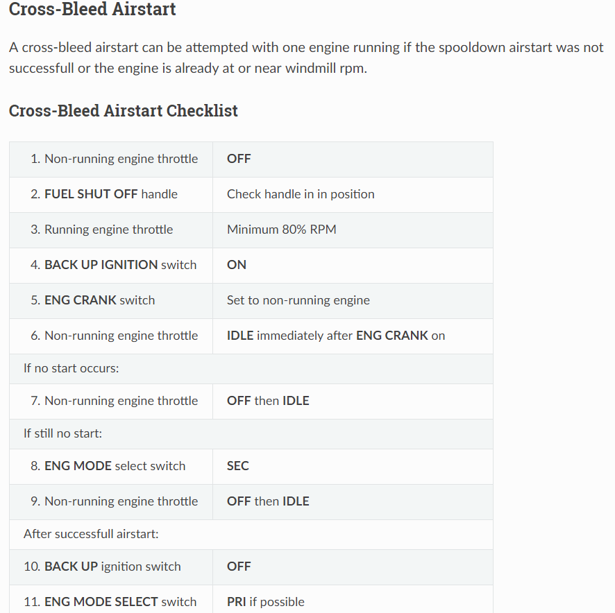 Cross-Bleed Airstart Checklist