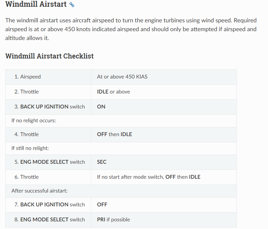Windmil Airstart Checklist